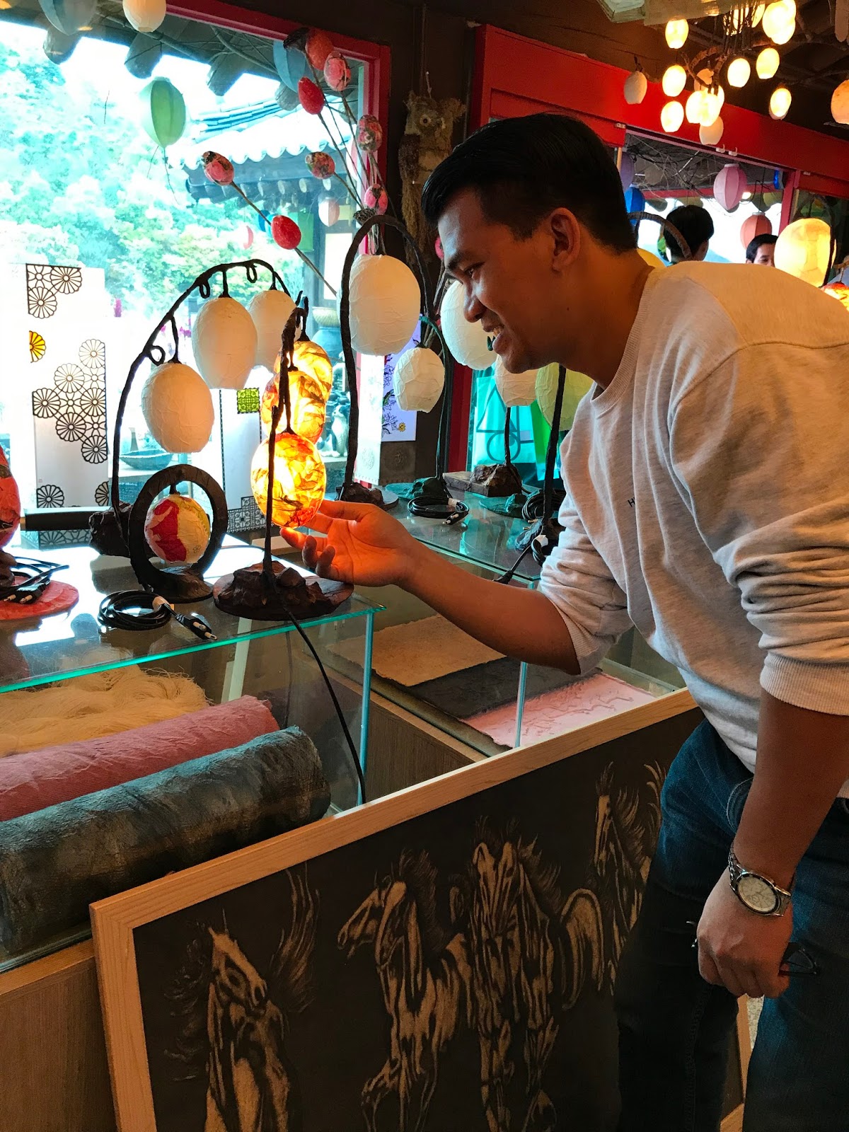 Well, nosotros didn’t genuinely brand the entire calorie-free bulb, everything was close prepared for us when nosotros arrived to the place. The solely affair that nosotros create was to twine the stand upward of the lamp. Using a dark newspaper in addition to gum made from Irish Gaelic patato starch, the lady master copy instructed us to twine the stand upward of our light in addition to hence it volition await to a greater extent than presentable in addition to nice. After nosotros finished, they served us amongst an awesome “flower tea”. I’ve tried several types of tea hither inwards Korea but it was my start out fourth dimension to run across a tea amongst blossom on it. It tastes similar an ordinary tea except that it looks to a greater extent than beautiful in addition to Instagrammable.